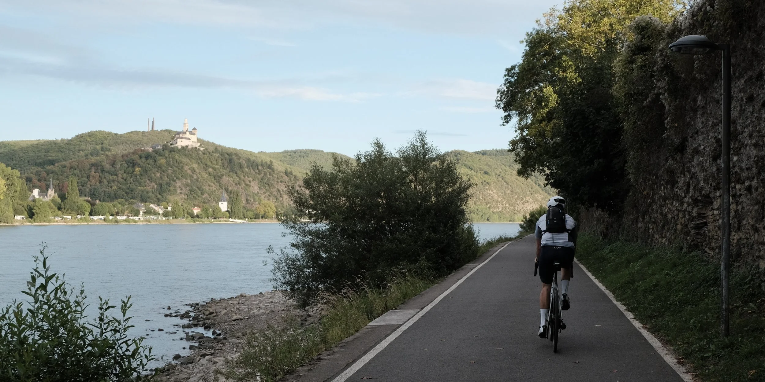 Der Jahreszeit entsprechend sind die Nächte wieder kühler und eingepackt in gefüttertes Trikot und Beinlinge ging es Richtung Mainz. Körper und Geist wurden langsam wach, je öfter die Kurbel sich drehte und durch die heimische Gegend verliefen die ersten 40km recht unspektakulär. Bei Kilometer 65 trennten sich die Wege der beiden frühen Vögel, nachdem gemeinsam per Fähre nach Bingen übergesetzt wurde.