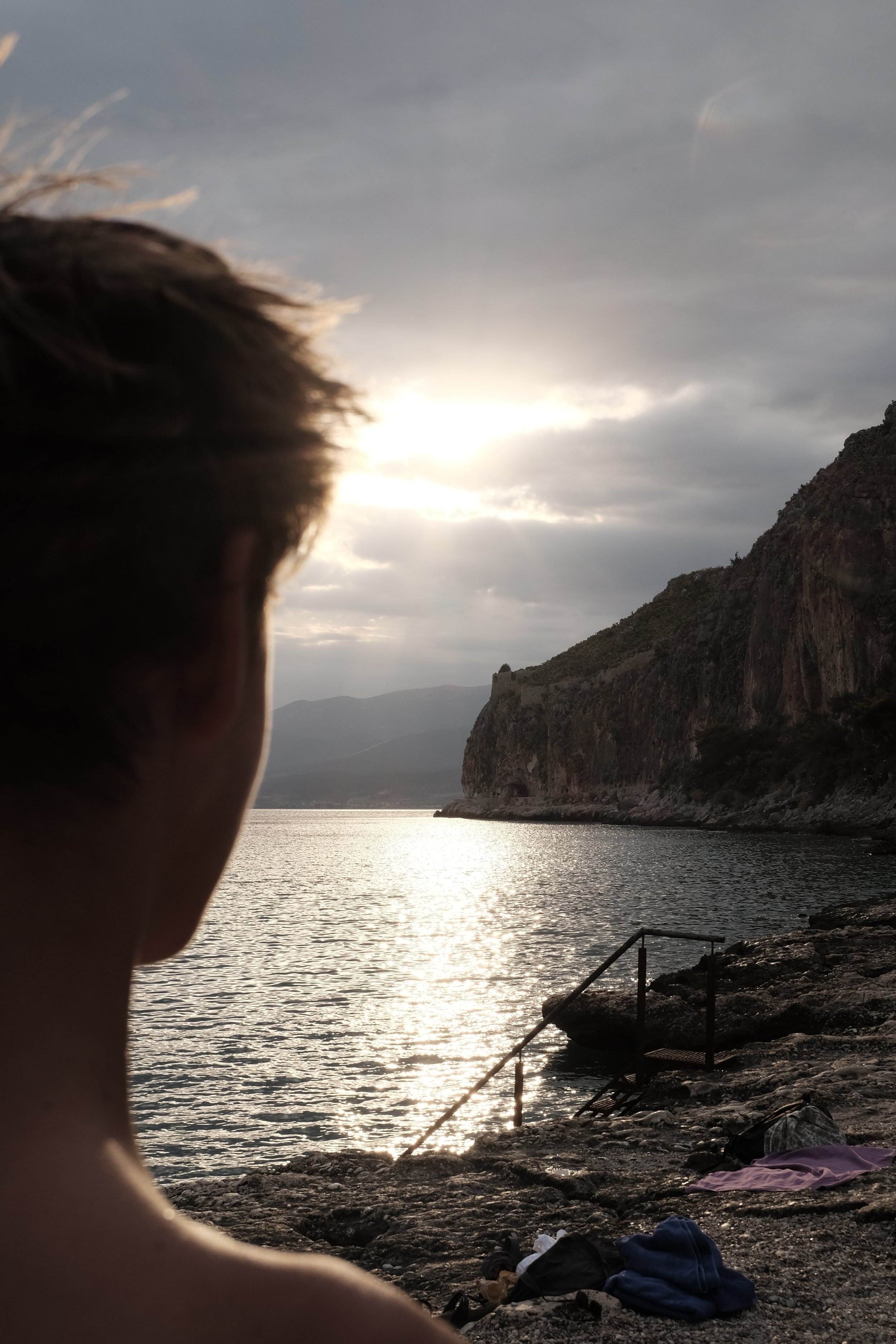 Nafplio ist ein zauberhaftes Städtchen in der Bucht des Argolischen Golfes, zwischen dem dritten und vierten Finger der Peloponnes. Die ersten Koffer werden uns nachgeschickt, und wir gehen in einem Pita-Laden etwas essen. Gesättigt versorgen wir uns am Kiosk mit Getränken, bevor es die 300 Meter Fußweg zum Strand geht. Die kleine Bucht wird nur von zwei Scheinwerfern und den Sternen beleuchtet. Nachts im Meer zu baden ist immer etwas Besonderes.