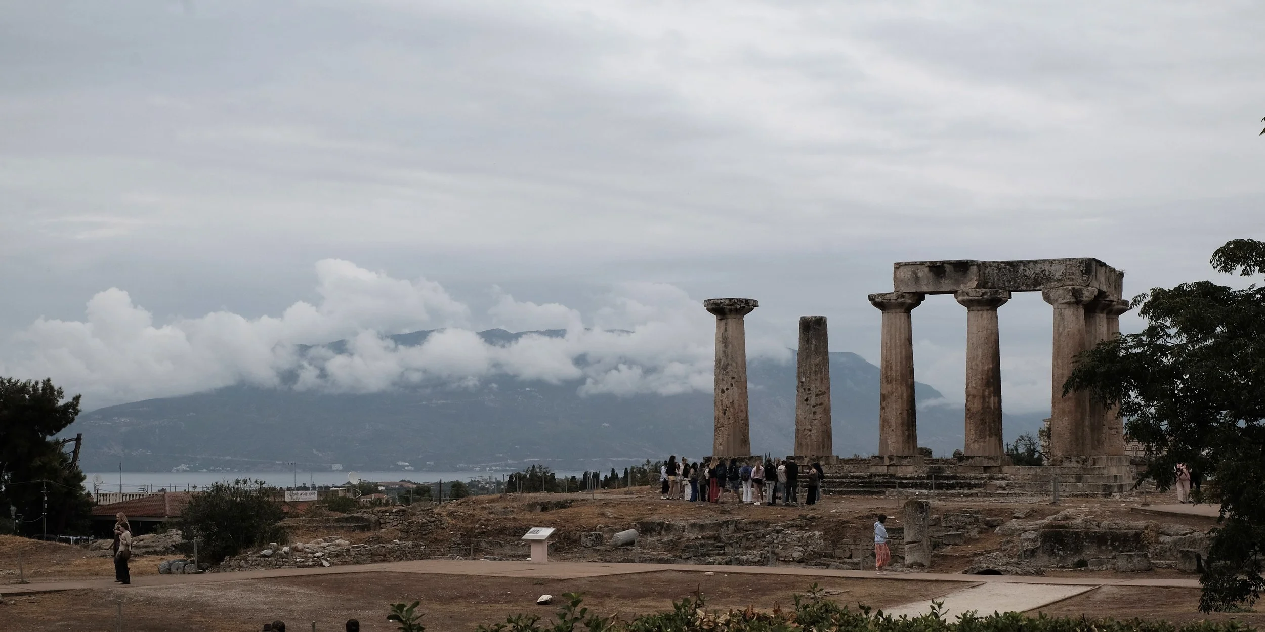 Der Bus bringt uns hoch auf den Berg. Akrokorinth ist selbst beim Nieselregen schön anzusehen und bietet eine gute Aussicht. Nächster Stopp ist die archäologische Site. Auf dem Gelände der Ausgrabung wimmelt es nur so von großen Touristengruppen. Der anhaltende Regen drückt etwas auf die Stimmung, und auch im engen Museum ist kaum ein Durchkommen. Die Sammlung ist trotz aller äußerer Störfaktoren überaus spannend. Funde aus dem Asklepios-Heiligtum, Statuen der iulisch-claudischen Linie und das absolute Highlight: Zwillings-Kuroi. Diese außergewöhnlich gut erhaltenen Grabstatuen aus archaischer Zeit, also 2.500 Jahre alt, stehen in typischer Pose und mit leichtem Lächeln vor den Gräbern von zwei Zwillingen. Das Personal ist darauf bedacht, keine Fotos zu ermöglichen und die Besucher zügig durch diesen Bereich zu befördern. Besonders wichtig scheint die Einhaltung der „Verkehrsregeln“ zu sein. Wer einmal ein Stück zu weit gelaufen ist, der darf nur unter größtem Protest nochmal etwas zurückgehen, um ein Exponat erneut zu inspizieren.