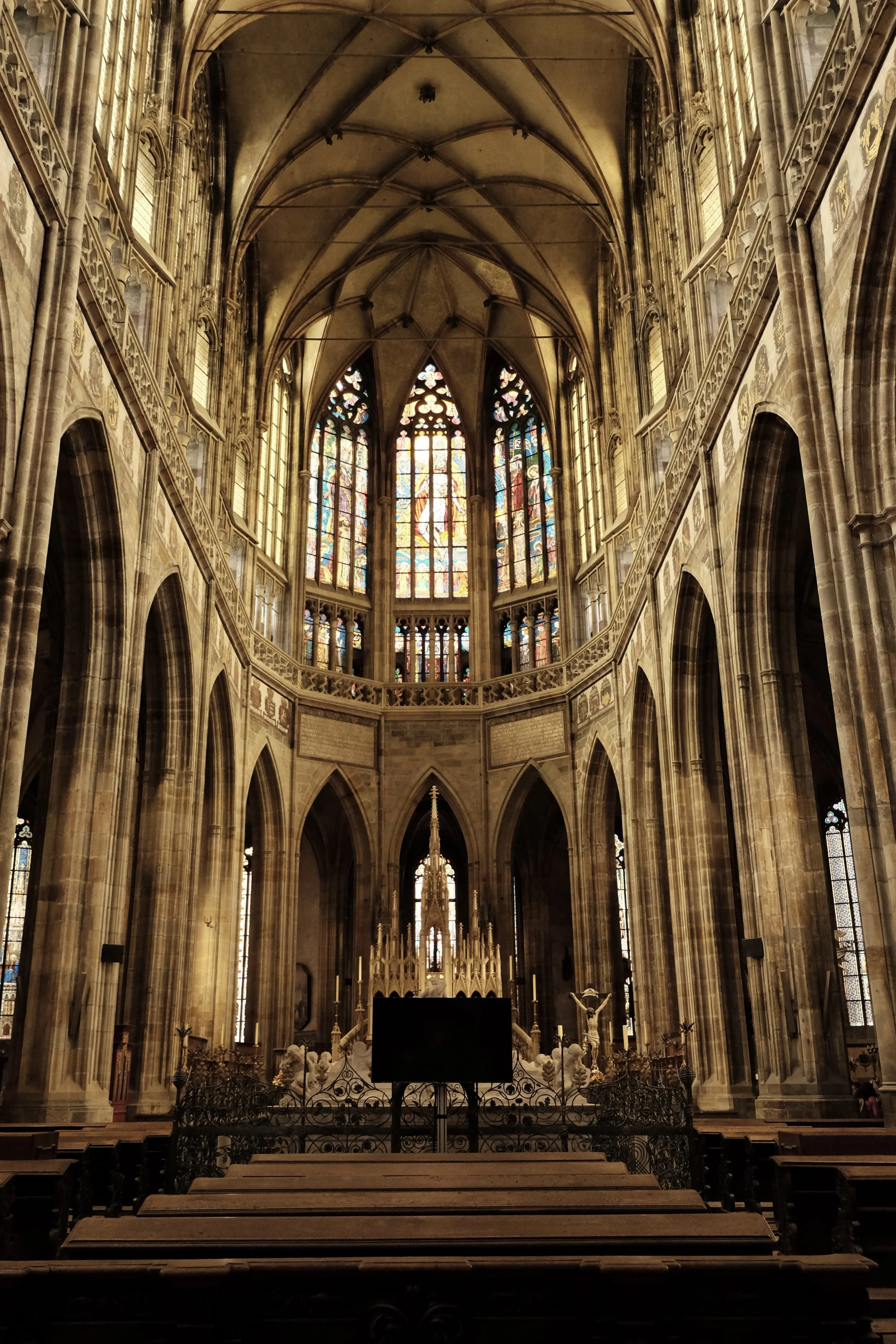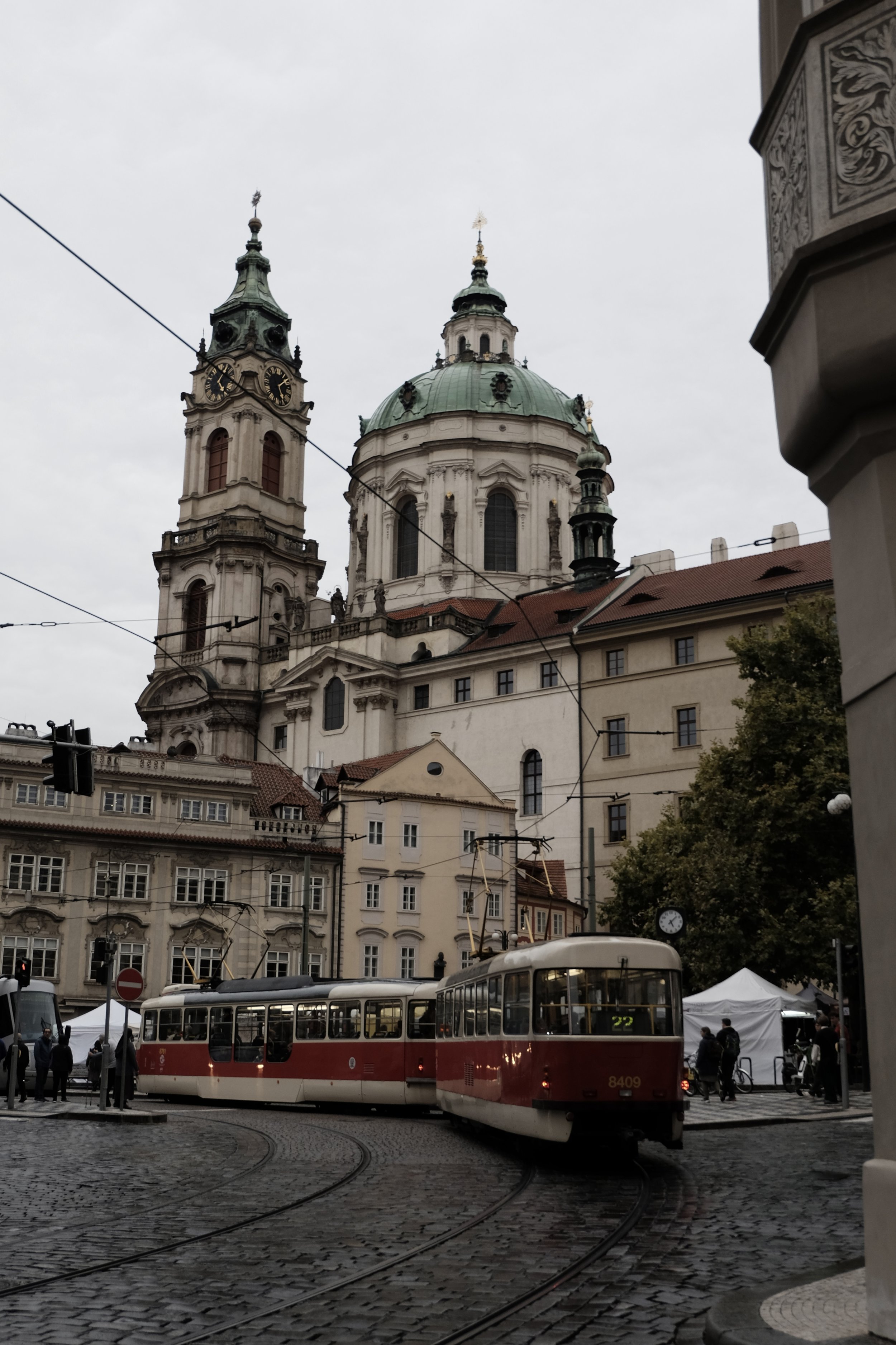 Genug vom Stadion – es ist zwar groß, aber abgesehen davon nicht weiter spektakulär. Die Zeit verstreicht, und die besten Dinge warten noch. Ich verpasse die historische Straßenbahn leider knapp. Nun gut, dann laufe ich eben rüber zum Hradschin. Der Burgberg ist schon aus der Ferne gut zu sehen. Der große Veitsdom ist ein gotisches Meisterwerk – ganz nach meinem Geschmack. Es wird auf einen Schlag touristisch, und Reisegruppen drängen sich an dutzende Schulklassen. Strategische Bewegung ist gefordert, und ich schaffe es gerade so, vor einer Schulklasse zu bleiben, um ein paar Fotos mit recht wenig Menschen darauf zu knipsen. Der Eintritt für den Veitsdom ist offenbar doch nicht kostenlos, und ich muss in den sauren Apfel beißen, mir ein Ticket für so gut wie alles auf dem Hradschin zu kaufen. Der Dom selbst ist wunderschön von innen und bietet einige großartige sakrale Gegenstände. Leider leidet das Erlebnis unter der strikten Vorgabe, wo man langzulaufen hat, und der permanenten Einbuchtung zwischen diversen Reisegruppen. Nichtsdestotrotz spannend, an einer der wichtigsten Wirkungsstäte Karls IV. zu sein. Der von ihm erbaute Veitsdom und die Gebäude drumherum, in denen der Überlieferung nach die maiestas carolina verbrannte. Der alte Königspalast ist ebenfalls ansprechend. Inzwischen setzt der angekündigte Regen ein. Die Tropfen auf der Kamera und die Touristenmassen schlagen etwas auf das Gemüt. Den zwischenzeitlichen Rest gibt mir der Besuch der St.-Georgs-Basilika. Eine fast 1.000 Jahre alte Basilika mit schöner Bemalung, in der ich mich auf einer der Bänke niederlasse und mir einen ruhigen Moment gönnen möchte. Die (zumindest innere) Stille währt nicht lang, und eine Gruppe Rentner weist mich unfreundlich darauf hin, dass doch bitte alle Mitglieder bei dem kurzen Stopp ihrer Führung sitzen möchten. Für eine Diskussion fehlen mir Lust und Kraft, und ich lasse das Diktat der Touristenführerin gewähren. Die Situation erinnert mich an eine in Griechenland, wo sich eine Führerin über unsere angeblich zu hohe Lautstärke mit den Worten „I’m giving a tour right now!“ beschwerte. Die Erinnerung wirft mir aber wieder ein Lächeln aufs Gesicht, und ich gehe wohlwollend raus in den Regen. Was soll’s – sollen sie sich eben alle setzen.